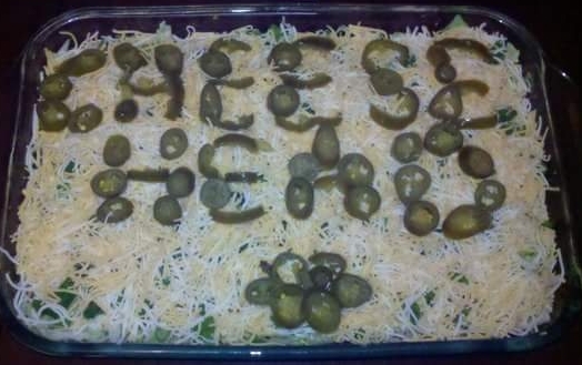 3. In 9×13 glass Pyrex, begin layering ingredients accordingly:
