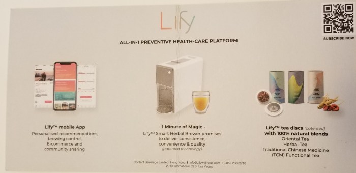 Lify created an all-in-1 preventative health-care platform that consists of a mobile app which asks you several questions to determine your current state in order to recommend which exact tea disc to insert into their Smart Herbal Brewer machine, which brews a cup in only 1 minute.