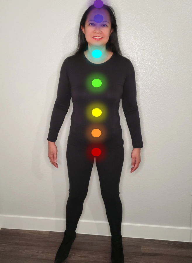 Basic understanding of chakras is necessary with Running Energy. Chakras are energy centers in your body and there are 7 to be aware of for this practice. The root or 1st chakra, a rich red color, is located at the base of your spine where your tailbone is. This is where grounding occurs to give you a sense of safety. Legs act as a direct channel to the root chakra from the feet. The sacral or 2nd chakra, commonly orange in color, is halfway between your tailbone and navel, often described as being 2-3 inches below your belly button and is both a sexual and creative energy while also being related to both your own and others emotions. The solar plexus or 3rd chakra, depicted by a yellow color, is at your stomach area and is where self-esteem and confidence resides to assert ourselves in feeling in control of our life. The heart or 4th chakra with the color green associated to it is not actually where your heart is, but rather in the center of your chest and is obviously where love is associated. The throat or 5th chakra, often represented by turquoise or aquamarine blue colors, is located in your throat and deals with verbal communication. The third eye or 6th chakra, an indigo blue color, is centered between your eyebrows and is the point for intuition. The crown or 7th chakra, colored purple or white, is at the very top of your head and is responsible for connecting spiritually with your higher self, others and the universe.